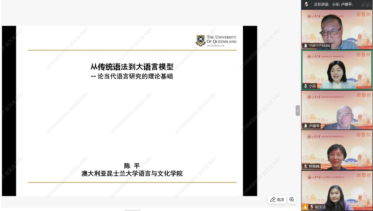 044月17日晚,学院举办国际中文教育创新发展“海岱讲坛”第二十二期,特邀澳大利亚昆士兰大学陈平教授作题为“从传统语法...