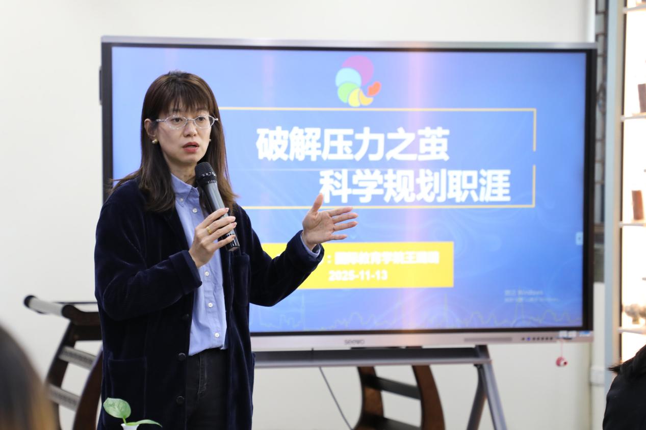 本次讲座以“破解压力之茧、科学规划职涯”为主题,从多维度为同学们提供心理调适指导,引导学生发掘抗逆力资源圈,增强心理韧性;建议学生掌握时间管理“四象限法”,缓解焦虑情绪;带领学生体验冥想放松练习,学习舒缓压力;勉励学生培养助人意识,共同成长进步……此外,讲座紧密结合学生现阶段发展需求,深入分析当前就业形势,就学生关切的就业难题提供切实可用的就业指导,引导学生积极探索职业世界,合理规划职业生涯。