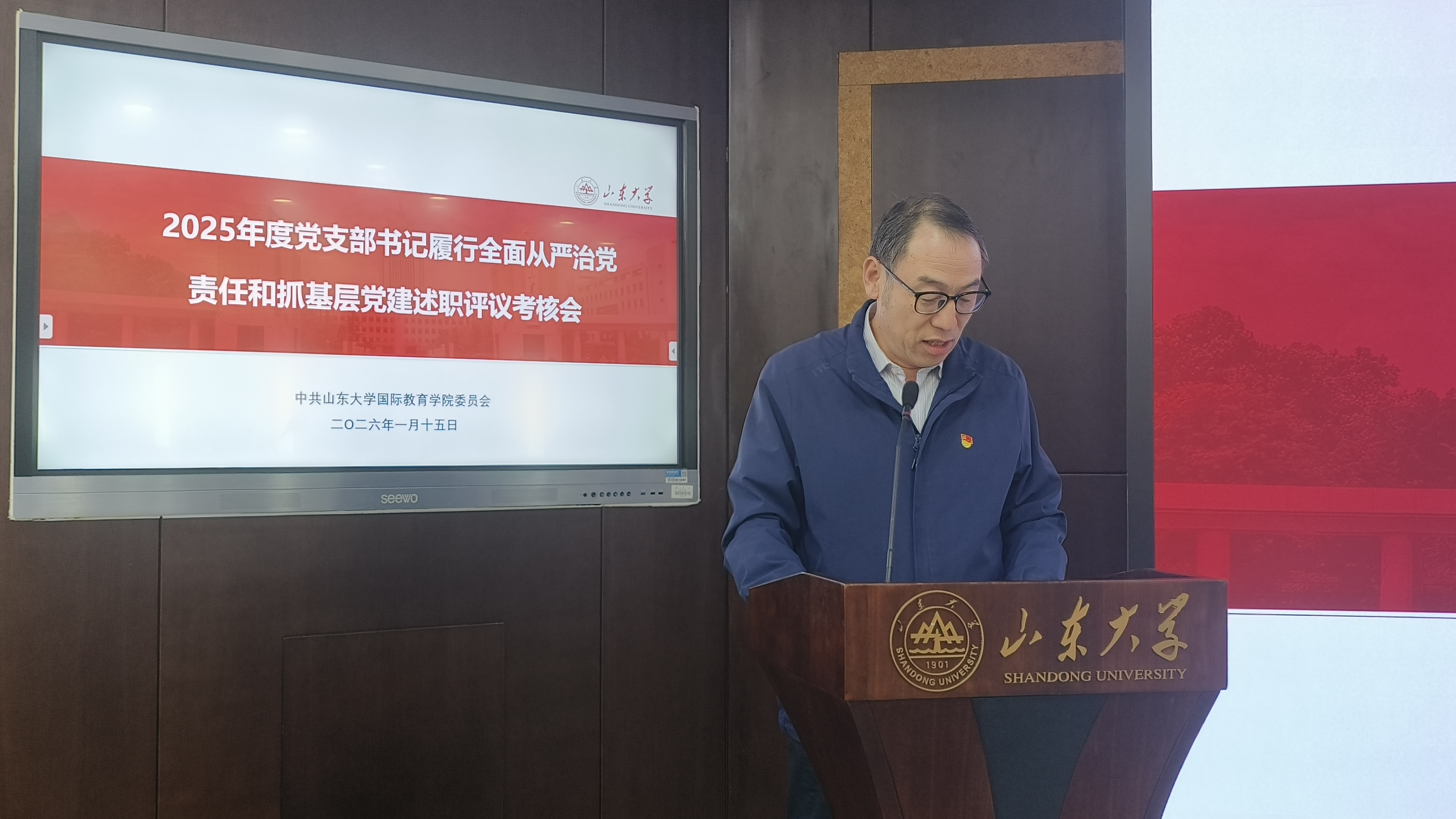 1月15日下午,学院党委举行2025年度党支部书记履行全面从严治党责任和抓基层党建述职评议考核会。学校党建实地考核工作第二小组组长郭举修同志参会指导,学院党委委员、领导班子成员、各党支部书记、委员、系(部)负责人、科级干部、党员代表参加会议。党委书记姬锐主持会议。