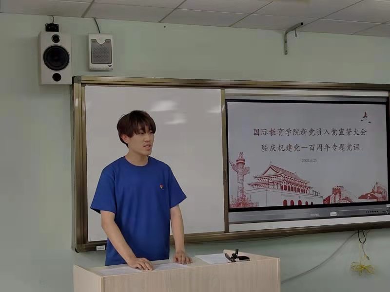 6月21日下午,国际教育学院隆重举行新党员入党宣誓大会暨庆祝建党一百周年专题党课。国际教育学院党委书记徐关众、党委副书记王璐璐、团委书记马艳妮、组织员任向荣及全体新党员参加会议。会议由国际教育学院党委副书记王璐璐主持。
