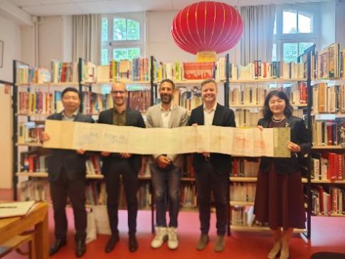 此外,5月20日至22日,山大代表团还通过授课、参访、会谈等方式,全面增进山东大学与法国雷恩市、布列塔尼孔子学院等重要合作伙伴之间的友好关系,深入拓展中法人文领域交流合作。在欧洲法语区孔子学院院长会议中,马晓乐向中国国际中文教育基金会一行简要汇报了学校在学科建设、人才培养模式和支持孔子学院品牌建设等方面的理念与举措,并与参会的15所孔子学院中外方院长就孔子学院高质量发展等问题进行探讨。在雷恩市莫雷帕斯公园(Parc de Maurepas)举行的“中国花园”揭牌仪式暨雷恩第三届茶文化节中,代表团在茶文化节上开展“十二生肖”甲骨文拓印等主题的体验式文化教学,吸引了当地市民参与体验。代表团先后赴雷恩市伊乐小学(Ecole élémentaire L’ille)、伯特利公立小学(Ecole élémentaire publique Poterie)和卡尔巴洪公立小学(Ecole élémentaire Carle Bahon)三所学校开展8课次的文化体验教学活动。在授课中,陈鹤龄老师通过图文并茂、生动细致的讲解,以及新鲜有趣的体验参与,让孩子们一起讲述汉字故事,用手用心感受中国古文字之美,探索中华优秀文化。此外,代表团还与雷恩都市区副主席波莱特·马修(Pollet Matthieu)、雷恩都市区国际与欧洲事务办公室主任西蒙·勒腾杜耶(SimonLetonturier)等雷恩市政府代表一行进行会谈。