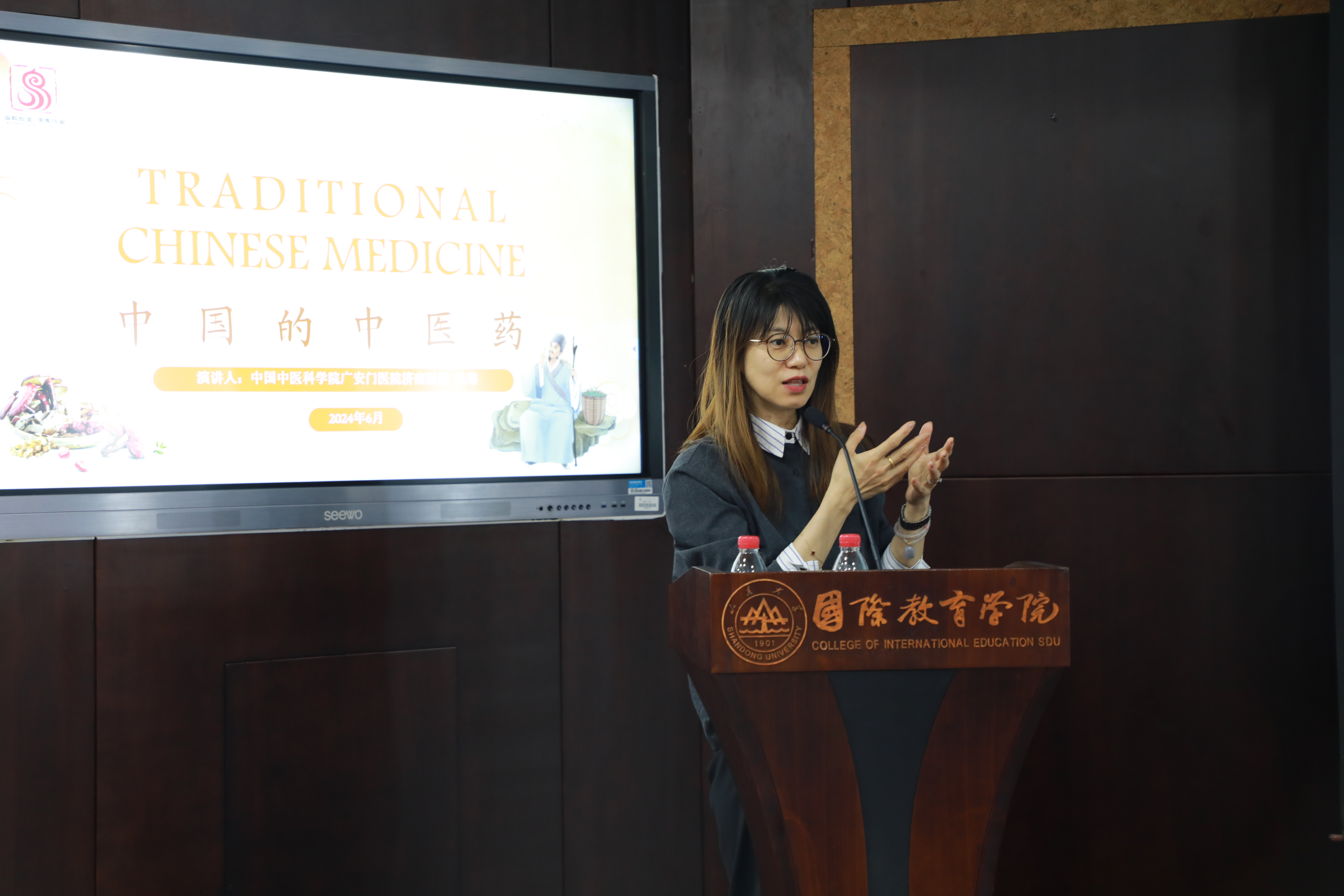在端午节来临之际,为普及中医药知识、传承和弘扬中医药文化,传播中医药健康养生理念,让更多人了解中医药的魅力与价值,6月5日,广安门医院济南医院(济南市中医医院)在山东大学国际教育学院举办“扁鹊故里 和合共生”中医药文化科普宣教活动,来自俄罗斯、塞尔维亚、泰国、韩国等国家的50余名国际学生参与其中。活动由国际教育学院党委副书记王璐璐主持。