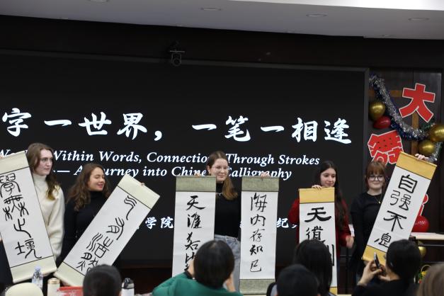 来自不同语言等级班的学生带来了精彩纷呈的节目。太极拳班的《二十四式太极拳》刚柔并济,诗歌朗诵《再别康桥》深情隽永,小品《这份礼物有点儿“重”》幽默生动,电影配音《西游记》趣味十足。此外,合唱《小酒窝》《遇见》《朋友》、歌曲串烧《花开有声》、话剧《朋友》、古诗联诵、书法展示《一字一世界,一笔一相逢》及互动环节《元宵灯谜会》等节目,积极融入中文与中国文化元素,表达出对中文韵律与情感的理解,呈现了跨文化交流的独特性和丰富性。