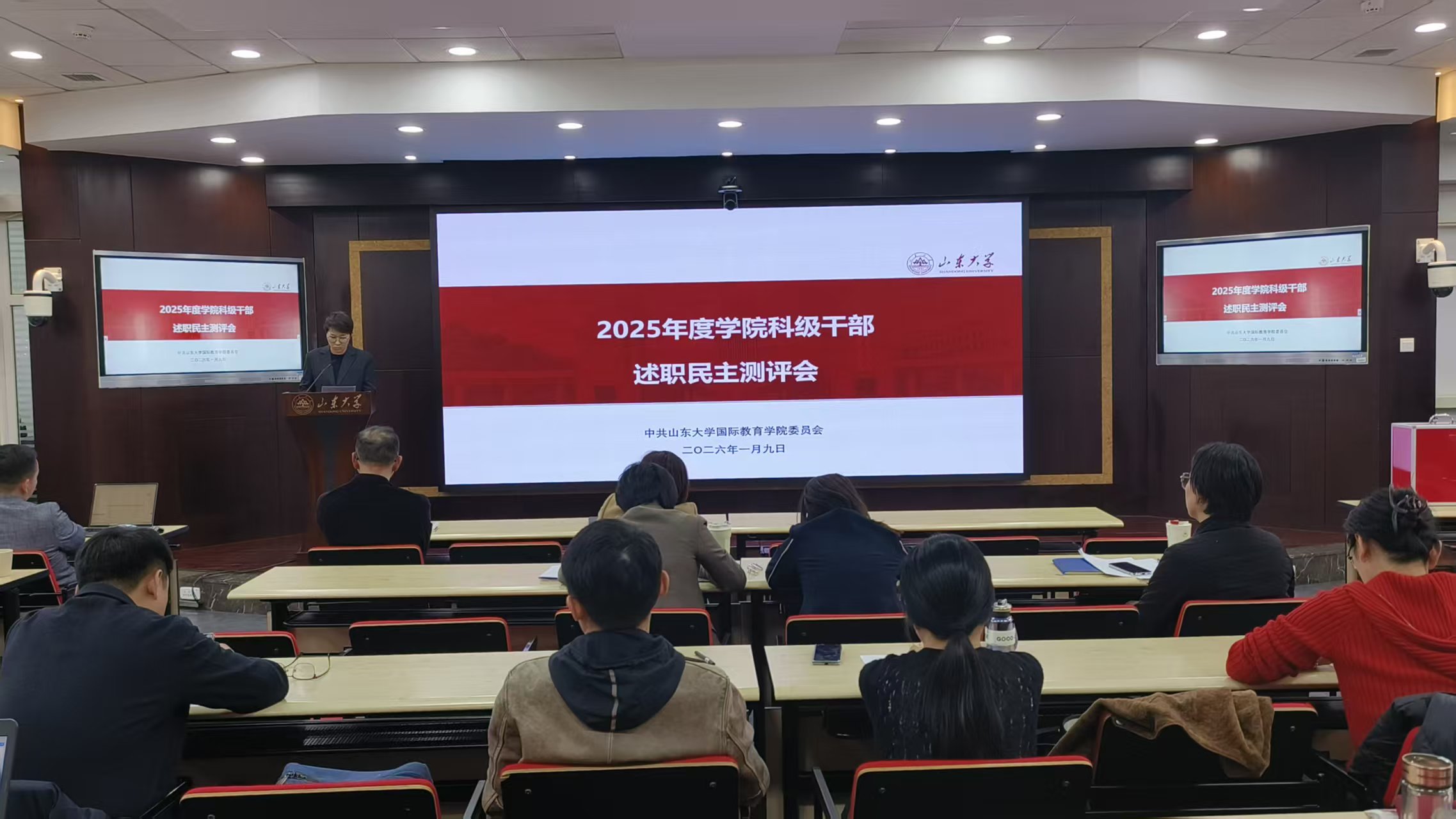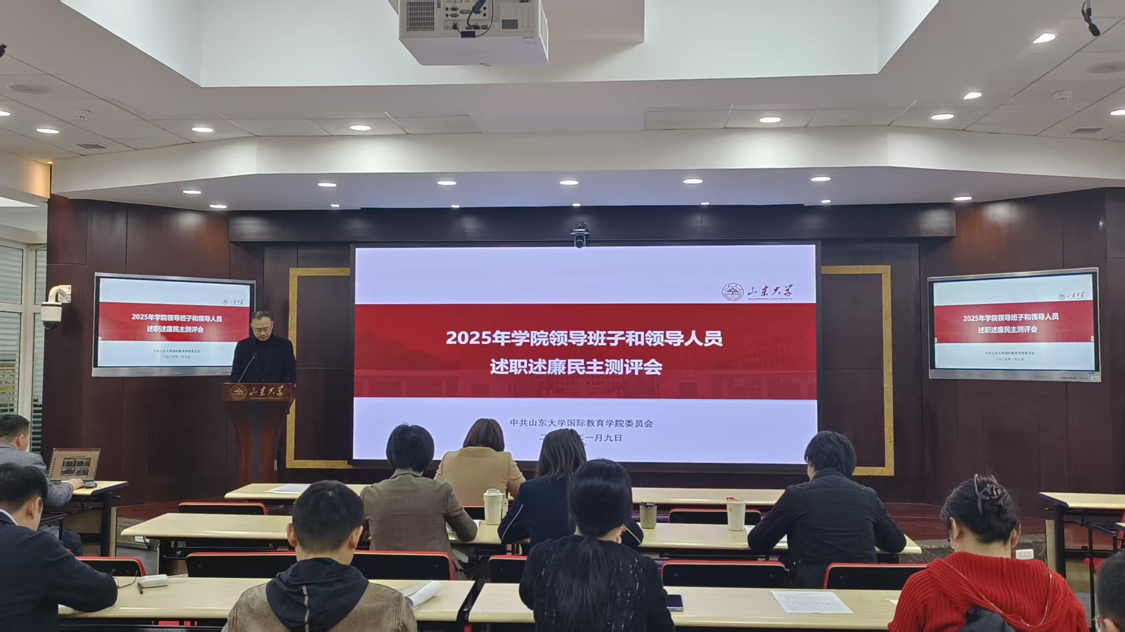 根据学校党委《关于做好2025年中层领导班子和领导人员考核工作的通知》的要求,落实《山东大学科级干部管理办法》文件精神,1月9日下午,国际教育学院党委召开领导班子和领导成员述职述廉、科级干部述职民主测评会。会议由学院党委书记姬锐主持。