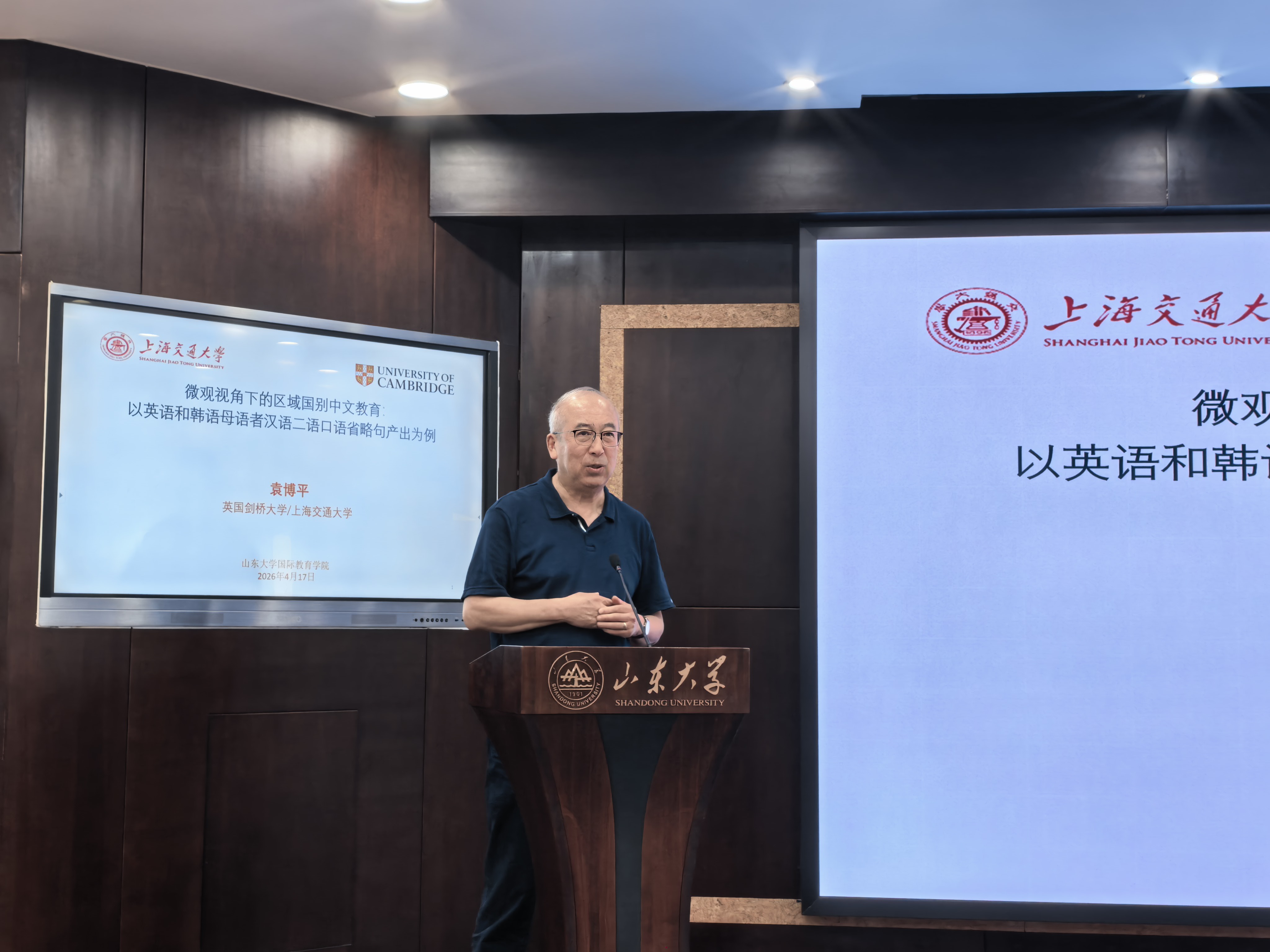 4月17日上午,学院于一楼报告厅举办国际中文教育创新发展“海岱讲坛”第二十三期,特邀英国剑桥大学袁博平教授作“微观视角下的区域国别中文教育:以英语和韩语母语者汉语二语口语省略句产出为例”的专题讲座。本次讲座由学院刘颖教授主持,青年教师及本硕博学生到场参加。